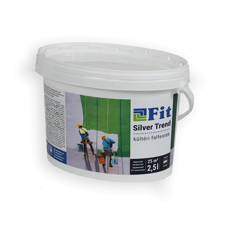 A Fit Silver Trend kültéri vízbázisú falfesték egyenletesen és jól - fed, átereszti a párát és könnyen tisztítható.